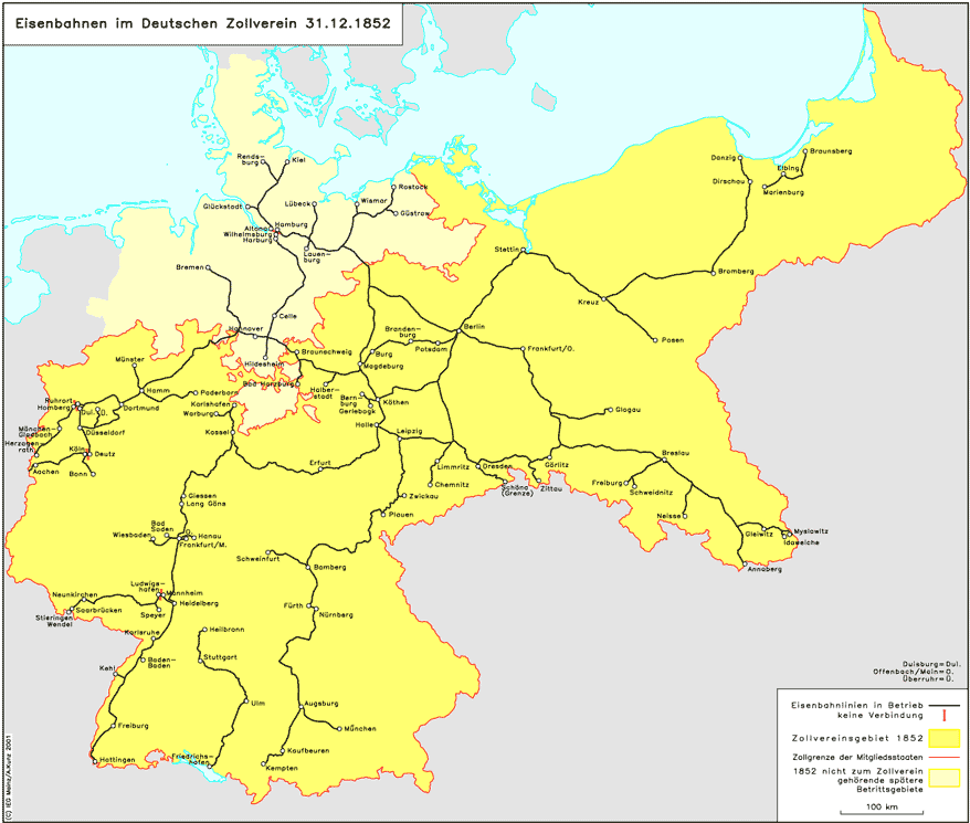 Eisenbahnen im Deutschen Zollverein 1852