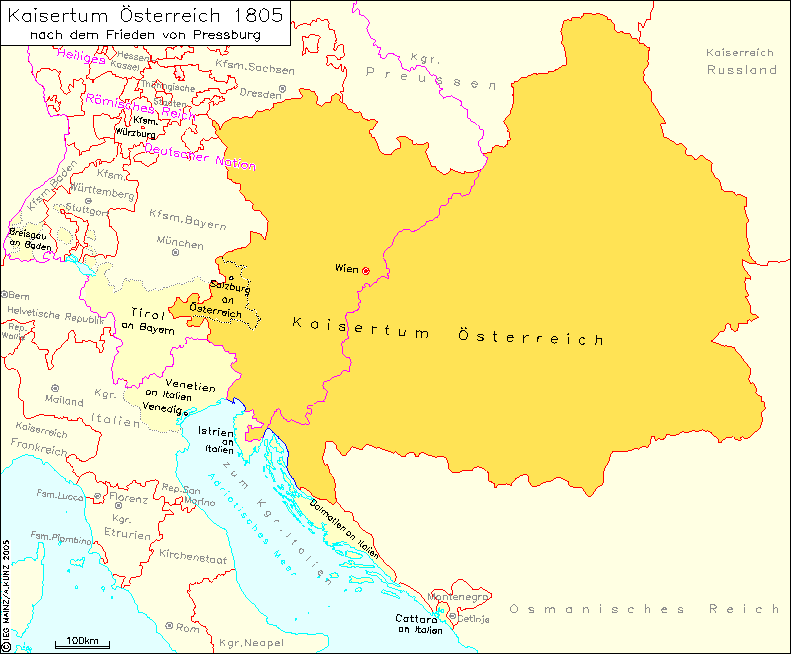 Kaisertum Österreich 1805 nach dem Frieden von Pressburg